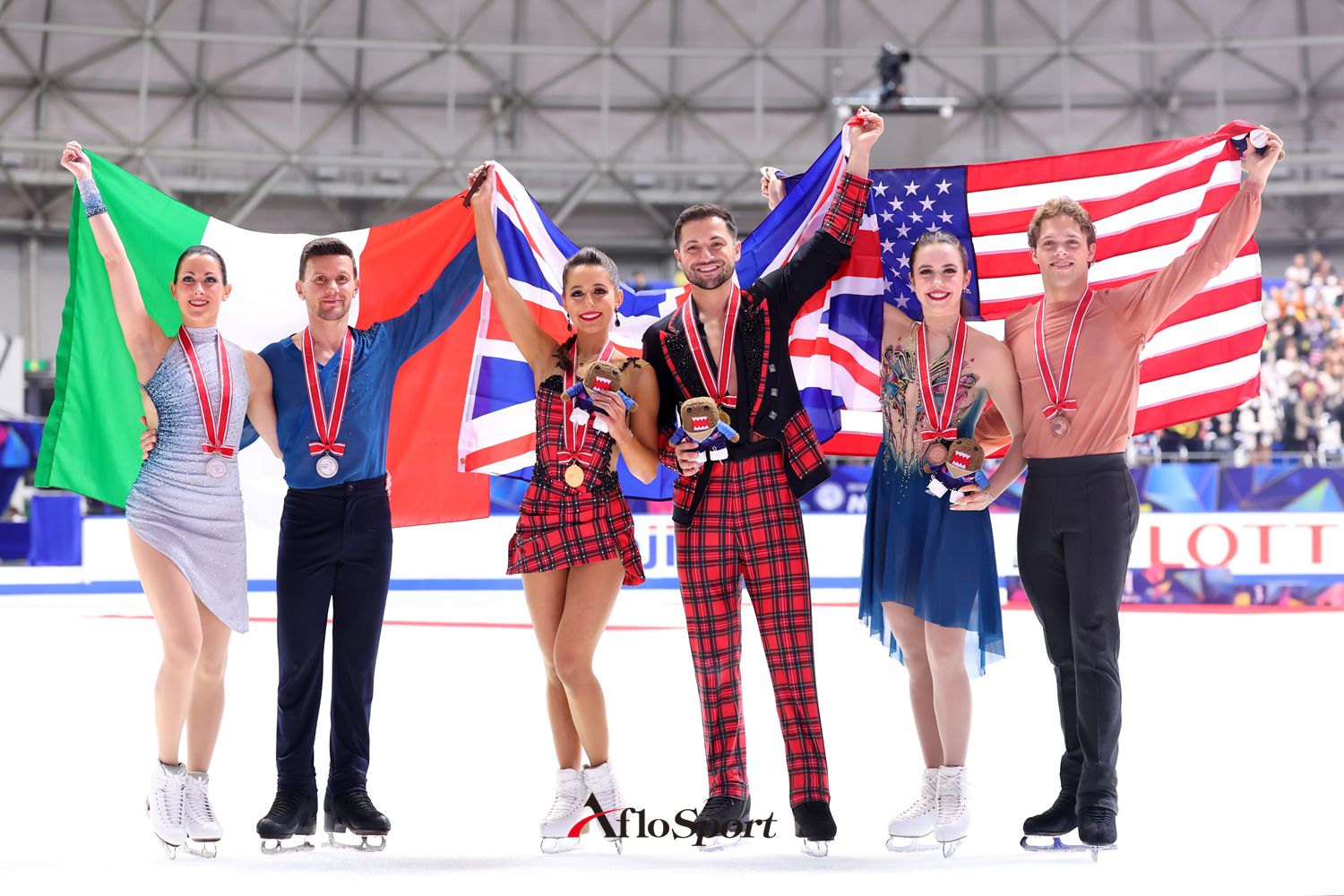 (L-R) Charlene Guignard & Marco Fabbri (ITA), Lilah Fear & Lewis Gibson (GBR), Caroline Green & Michael Parsons (USA)